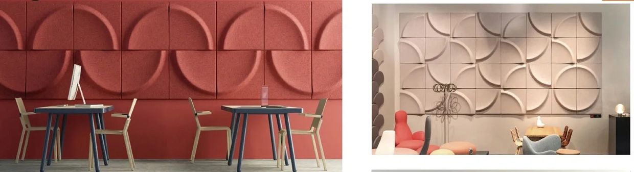 Module stereo sound-absorbing board 550*550 mm size, quarter-half arc design, combined geometric variability, so that a style. By switching different angles, switching different directors to achieve a variety of pattern charges, polyester fiber texture is smooth, the shape steel is soft, the surface can also be carried out cloth pressing, wool felt pressing, more delicate touch.